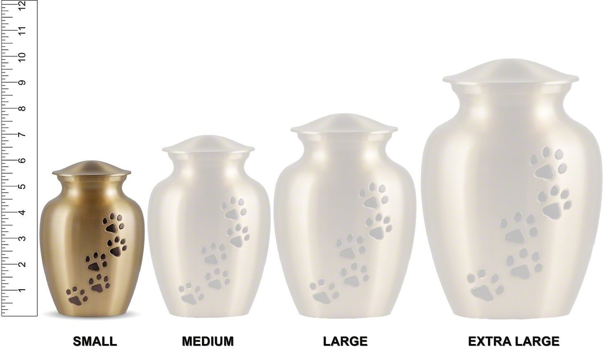 The urn is made from solid brass with a secure screw-top lid and is designed to last a lifetime.