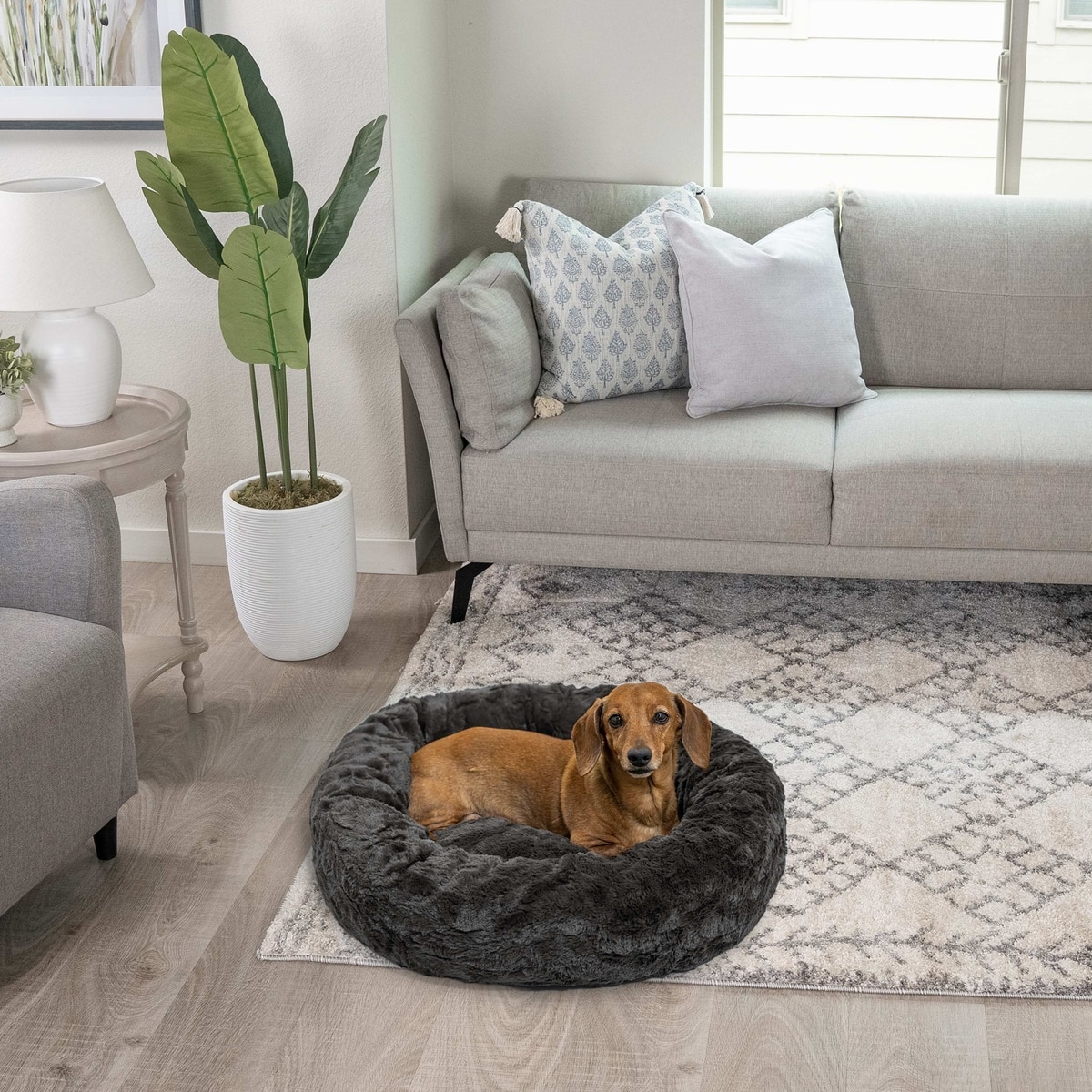 Best Friends by Sheri Calming Lux Fur Donut Cuddler Bolster Cat & Dog Bed, Mink, Small