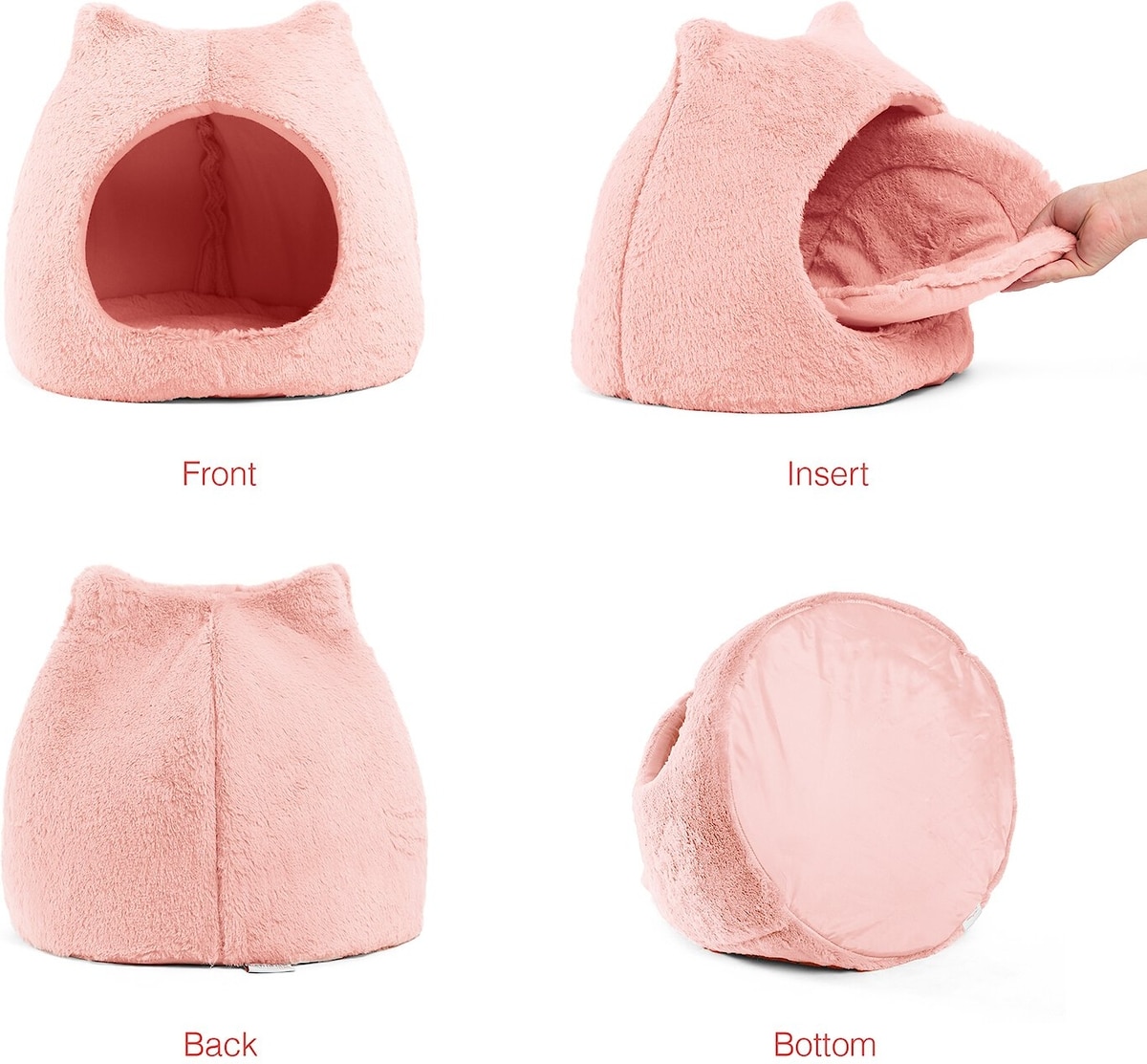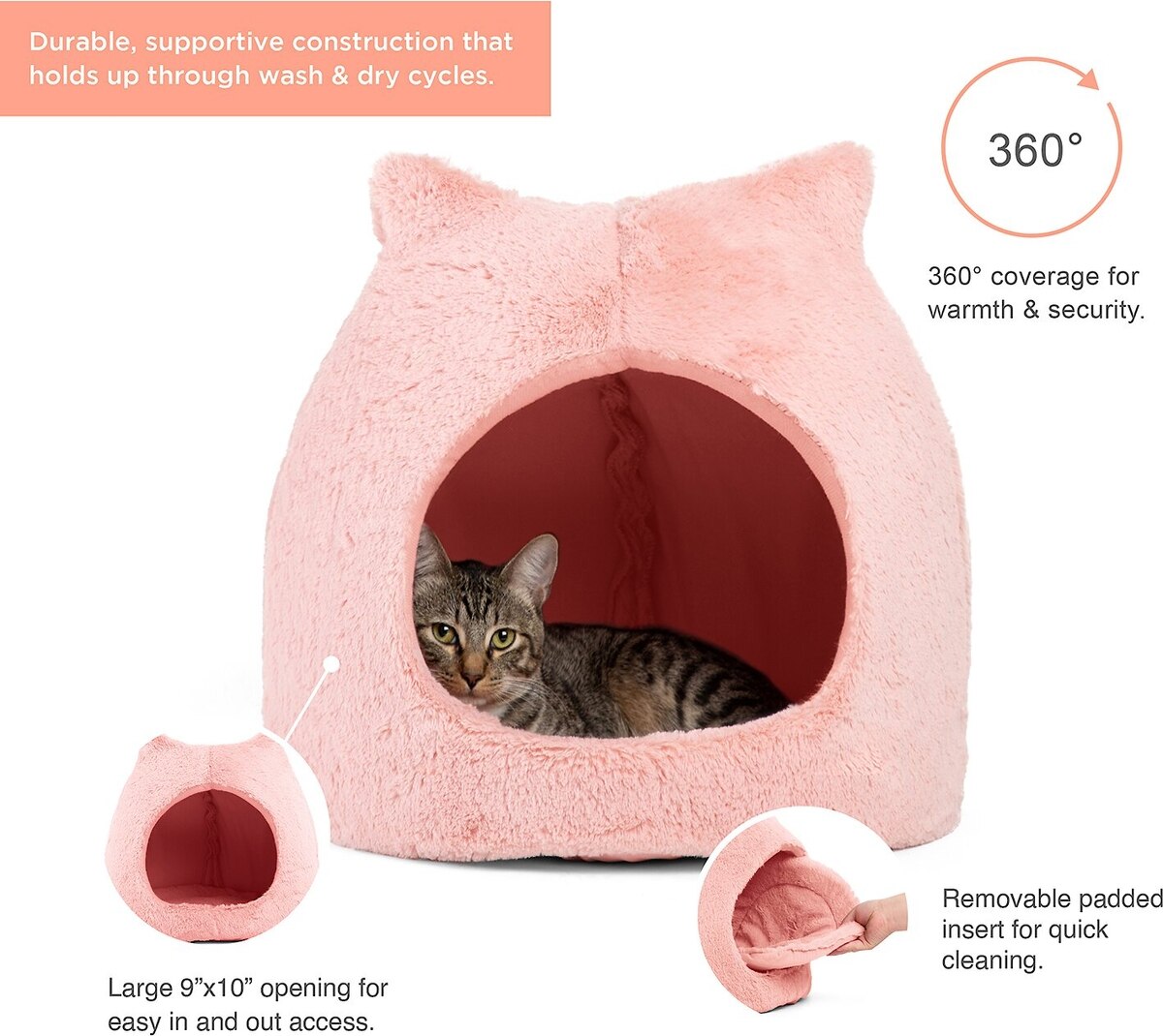 Best Friends by Sheri Meow Hut Covered with Water-Resistant Bottom Cat Bed, Blush, Standard
