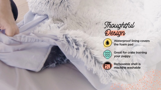 - Soft faux fur and an ergonomic bolster cradle your pet in cozy warmth.