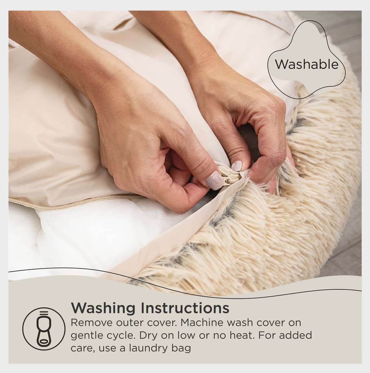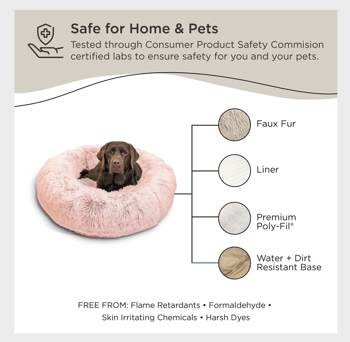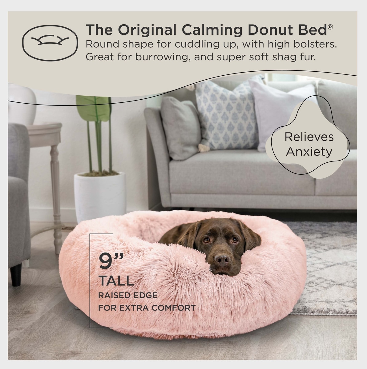 Best Friends by Sheri The Original Calming Shag Fur Donut Cuddler Cat & Dog Bed, Cotton Candy, Large