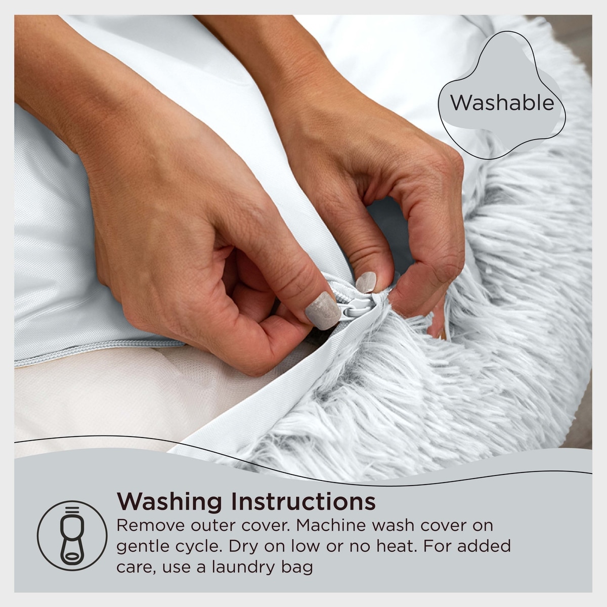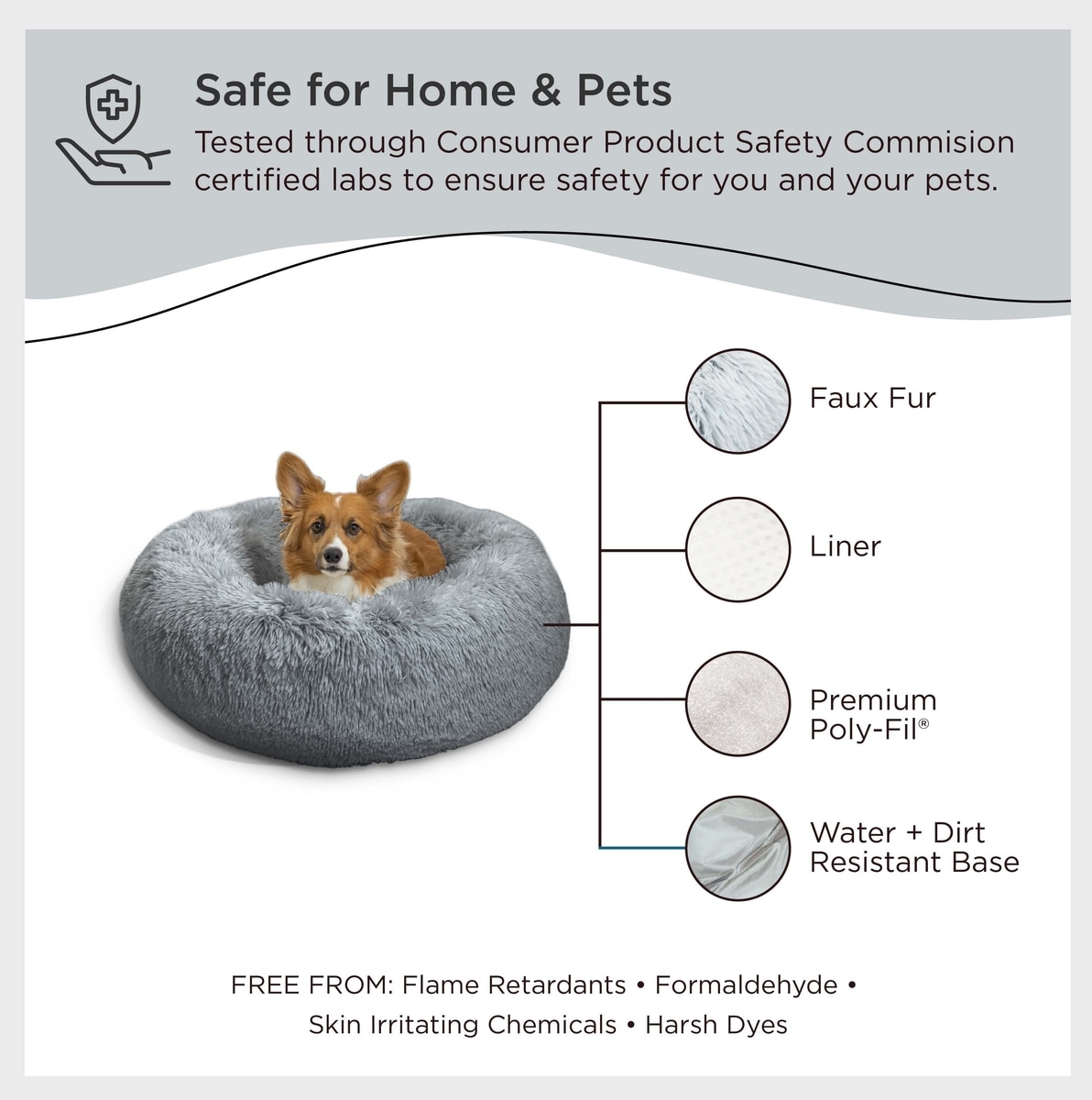 Best Friends by Sheri The Original Calming Shag Fur Donut Cuddler Cat & Dog Bed, Grey, Medium