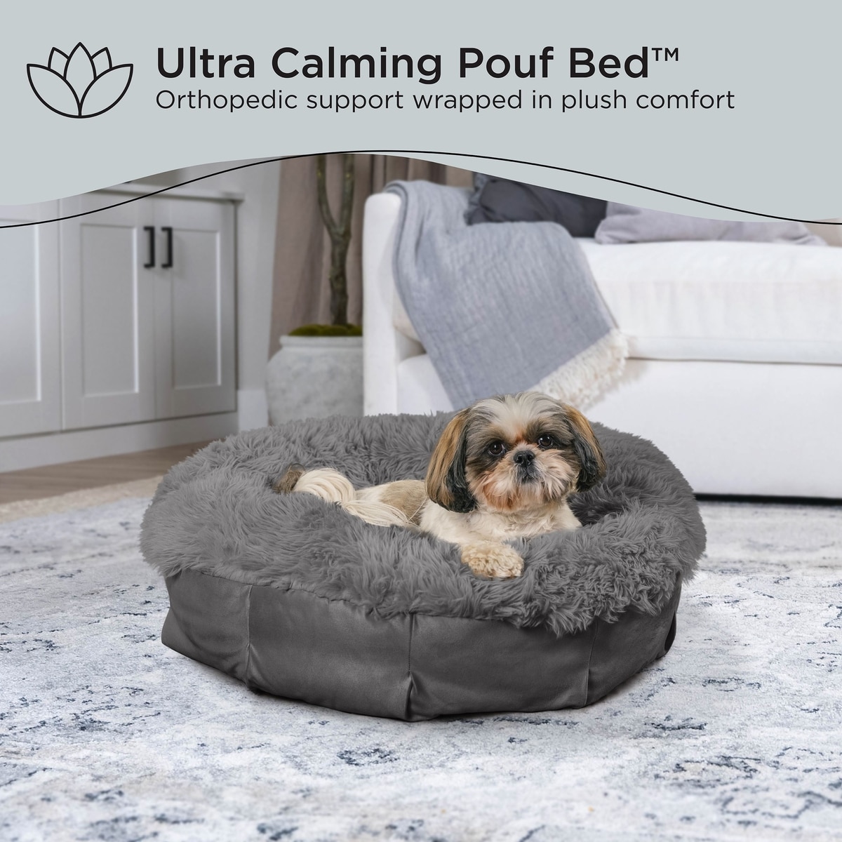 Best Friends by Sheri Ultra Calming Orthopedic Pouf Luxury Donut Dog Bed with Removable Cover, Gray, Small