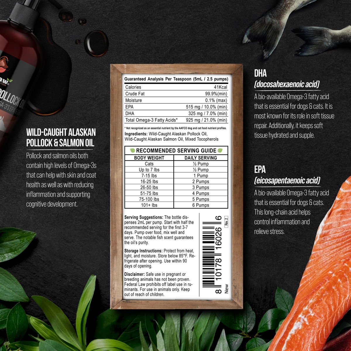 Best Paw Nutrition Wild Salmon & Pollock Oil Liquid Omega-3s Dog & Cat Supplement, 16-fl oz bottle