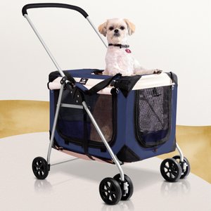 The best strollers for small dogs are sturdy, well-ventilated strollers that offer a smooth ride for your little pup. Look for small dog strollers with large mesh windows for optimal airflow and a good view of the outside world. An elevated design that lets your pet ride up high is optimal for small dogs, too. You can also find small dog strollers that fold or lift out to become a handy dog car seat or carrier. If your dog likes adventure, three-wheeled and all-terrain small dog strollers offer superior maneuverability and better handling on a variety of surfaces. Use the handy product filters on our site to find all the best small dog strollers for your petite pup!