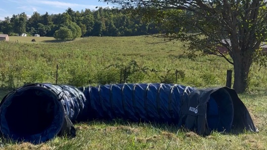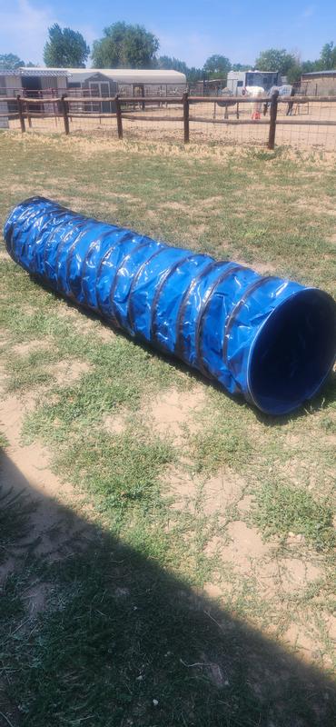 Quality tunnel. It’s a good size and easy to maneuver. We’ve done agility classes in the past so Nala was comfortable going through the tunnel, others might not go through as easily with how dark it is inside. Just takes some practice! Fillable sandbags on both sides are nice to keep the tunnel from moving