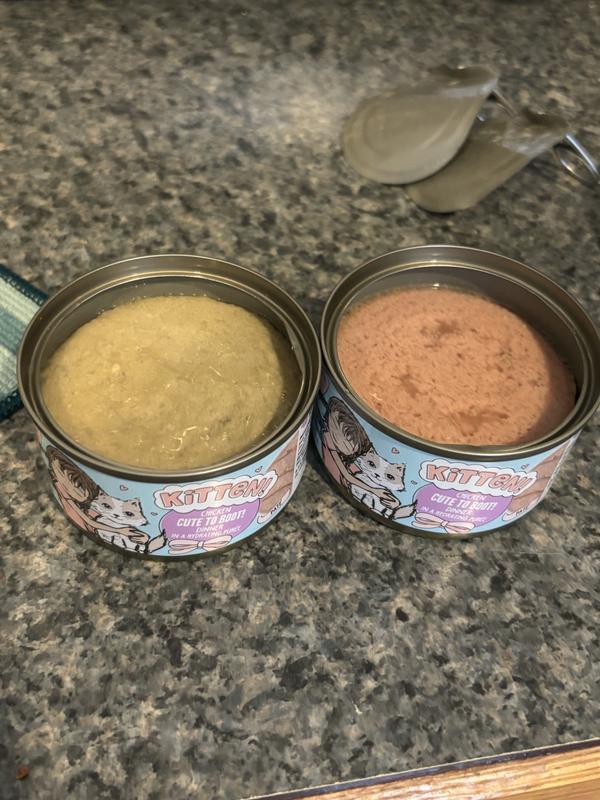 My kitten is obsessed with this this pate and I like how I can chop it up in cubes or mush for more of a normal pate. There have been a couple cans that when opened were discolored which was disappointing
