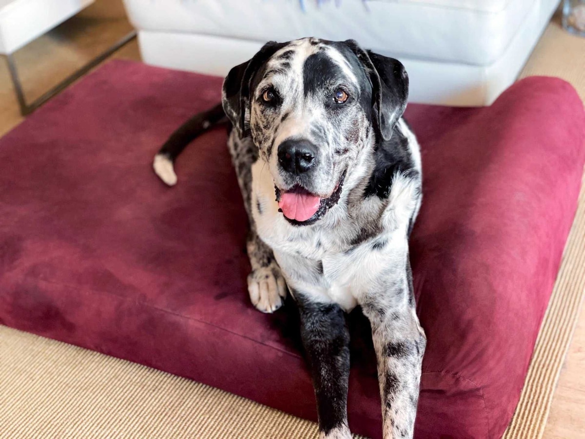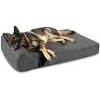 My dog, a Great Pyrenees mix, still prefers her old soft dog bed and avoids this one. It has too many firm foam layers and sits too high off the floor for large dogs that like to stretch out and sprawl to relax. The absolute worst part is the velour cover. It looked filthy after only a few days. We’re used to fur everywhere, but the material shows every footprint and every spot that was licked to pick up a treat.