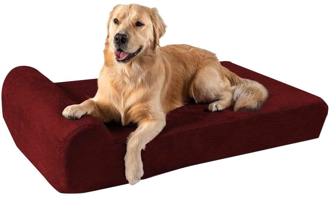 Big Barker 7" Headrest Orthopedic Pillow Dog Bed with Removable Cover, Burgundy, Large