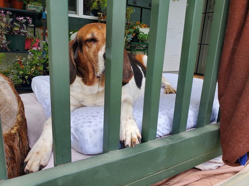 This is hands down the best dog bed on the market and I ended up buying three of these for my dog who is 10 years old so that he has somewhere comfortable in every room. He's 100 coonhound and he sits ON the bed rather than sinking into it. I have recommended this brand to so many people already and I am so happy with the purchase of these beds and my dog loves them too. He gets up SO much easier now and has less pain. Even the $100 beds I tried for him are absolutely trash and have zero support, usually they are egg crate foam too. Thank you big barker!! (in the photo I put his thinner old bed on top of the barker bed to make it a little higher up and he loves it but he also lays on the plain barker beds too)