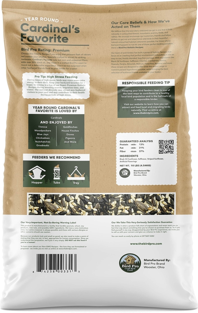 Bird Pro Year-Round Cardinal's Favorite Holistic Bird Food, 10-lb bag