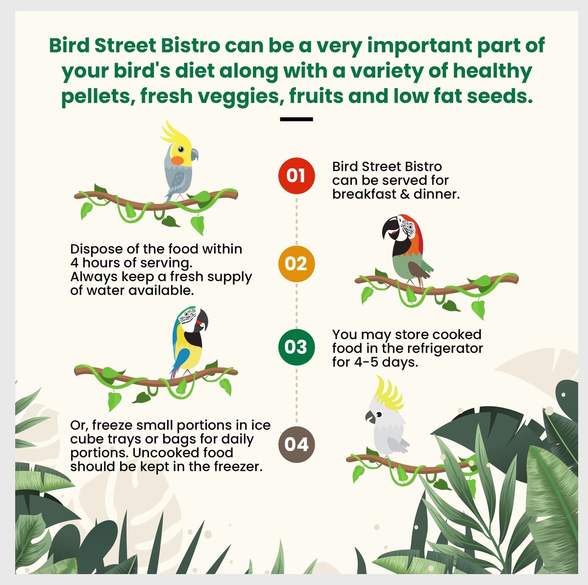 - Bird Street Bistro Tropical Feast on the Fly Bird Food, 12-oz bag$15.50 Chewy Price$14.72 Autoship PricePromo, New Customers Only: Spend $49+, Get $20 eGift Card