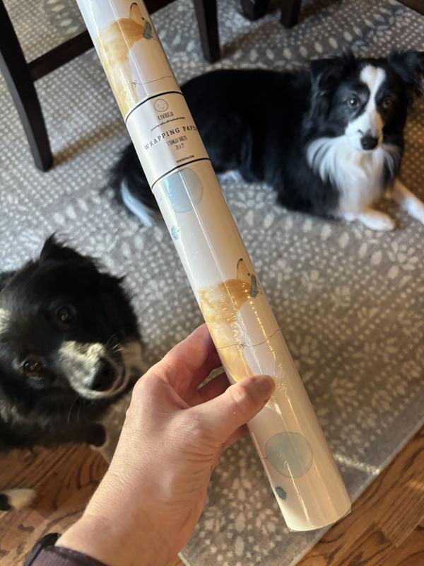 I absolutely love this puppy wrapping paper! The quality is fantastic — thick enough that it doesn’t tear while wrapping, but still easy to fold. The print is even