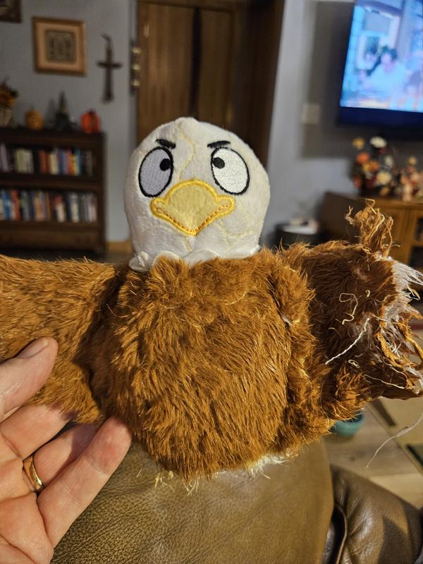 Ewan can typically gut a stuffed animal in minutes. This eagle is made of super tough fabric, so even though he’s been giving it his best, this toy is still (mostly) intact. Definitely worth the price!