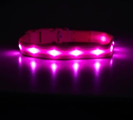 Blazin LED USB Rechargeable Nylon Dog Collar, Pink, X-Small