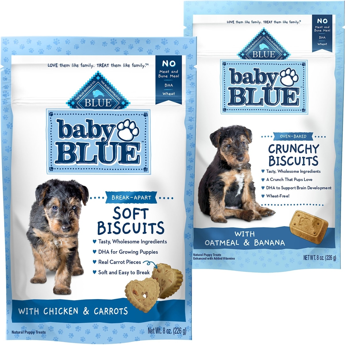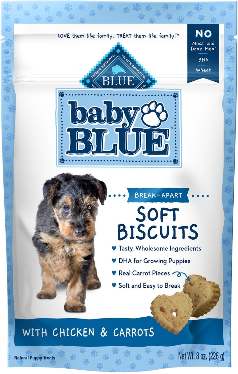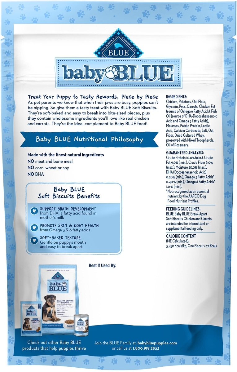 Bundle: Blue Buffalo Baby BLUE Soft Biscuits Natural, Chicken & Carrots + Crunchy Biscuits Natural Biscuits, Oatmeal & Banana Puppy Dog Treats