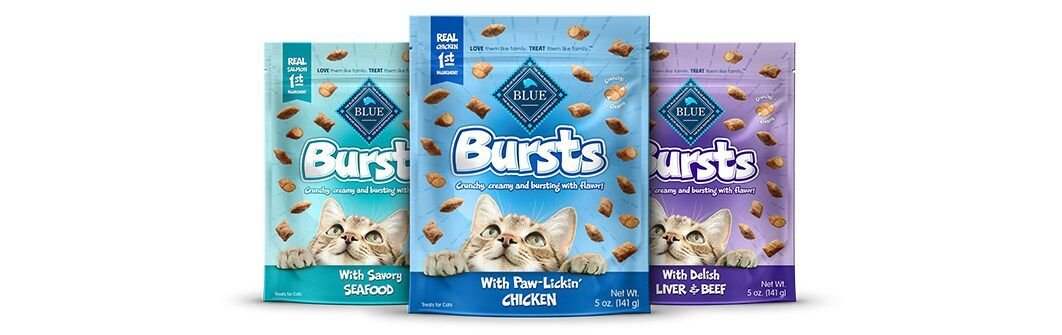 These BLUE Bursts cat treats are just bursting with paw-licking good flavor! With a deliciously crunchy outside and a creamy, delectable center, they’re guaranteed to please even the pickiest palates. They’re even made without corn, wheat, soy and artificial flavors, so you can feel extra good about feeding them to your kitty.