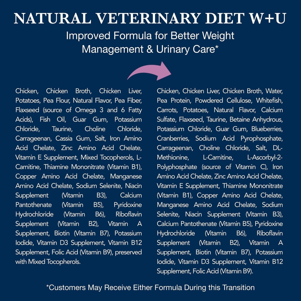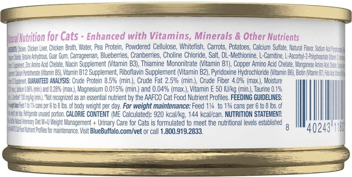 Blue Buffalo Natural Veterinary Diet W+U Weight Management + Urinary Care Chicken Wet Cat Food, 5.5-oz can, 24 count
