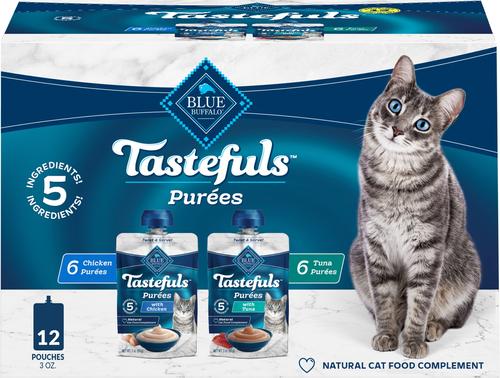 Blue Buffalo Tastefuls Adult Natural Purees Variety Pack Chicken & Tuna Wet Cat Food, 3-oz pouch, case of 12