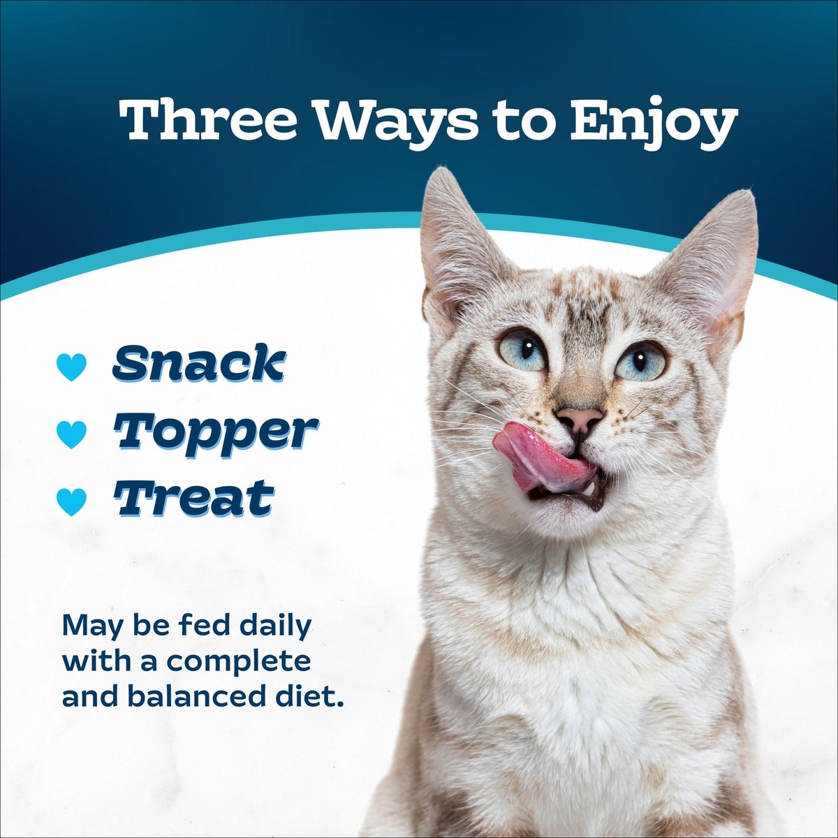 BLUE Tastefuls Purées are the perfect snack, topper, or treat for your furry friend. Use them to complement deliciously healthy dry and wet foods from BLUE or any of your kitty’s favorites. They make everything taste great, no matter how you squeeze them!