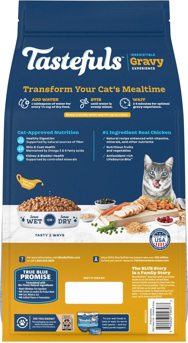 Blue Buffalo Tastefuls Irresistible Gravy Experience Chicken & Brown Rice Recipe Dry Cat Food, 7-lb bag