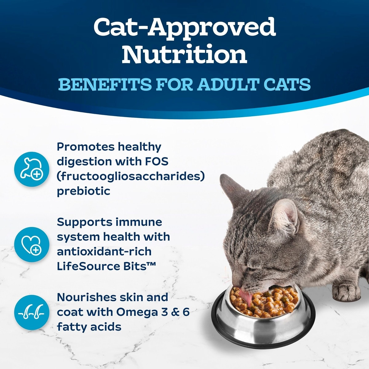 Start by mixing 25% of blue with your cat's old food, and gradually increase the proportion of blue over the next 14 days.