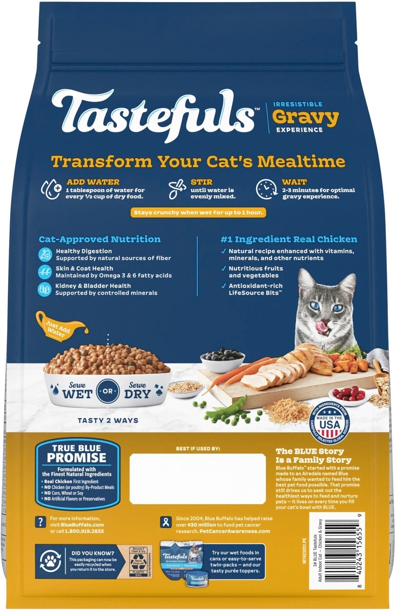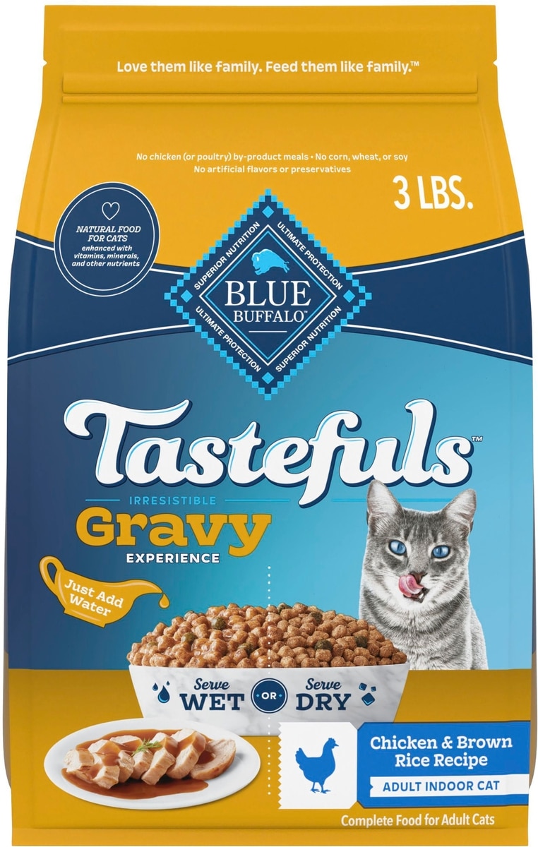 Blue Buffalo Tastefuls Irresistible Gravy Experience Chicken & Brown Rice Recipe Dry Cat Food, 3-lb bag