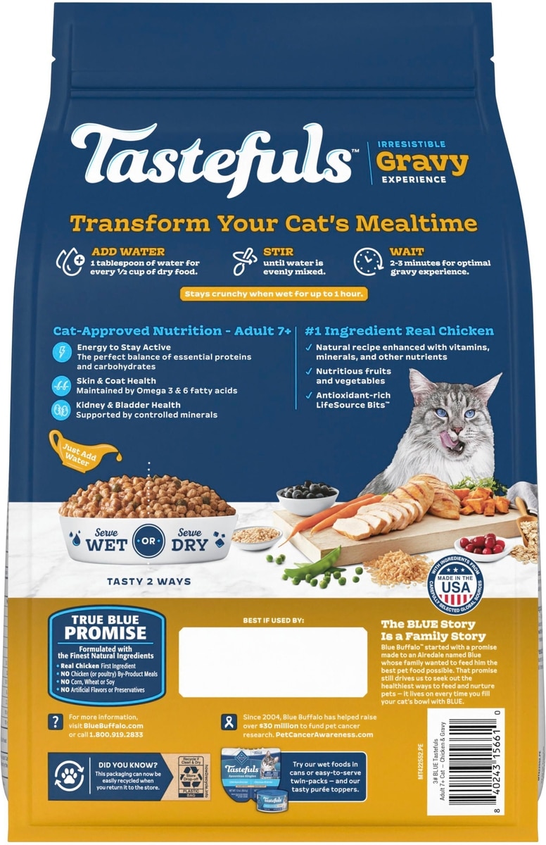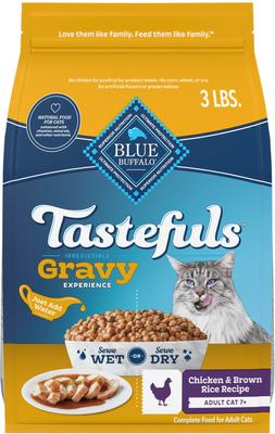 Blue Buffalo Tastefuls Irresistible Gravy Experience Senior Chicken & Brown Rice Recipe Dry Cat Food, 3-lb bag