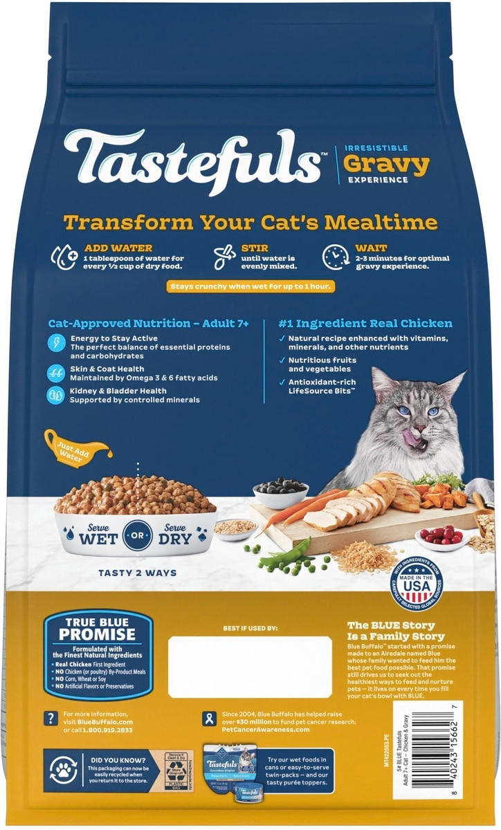 Blue Buffalo Tastefuls Irresistible Gravy Experience Senior Chicken & Brown Rice Recipe Dry Cat Food, 5-lb bag