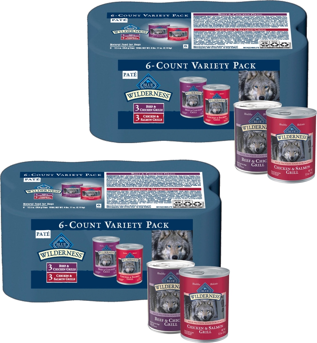 - Blue Buffalo Wilderness Chicken & Salmon High-Protein Grain-Free Adult Canned Dog Food, 12.5-oz, case of 12$39.00 Chewy Price$47.88 List Price$37.05 Autoship PricePromo, New Customers Only: Spend $49+, Get $20 eGift Card