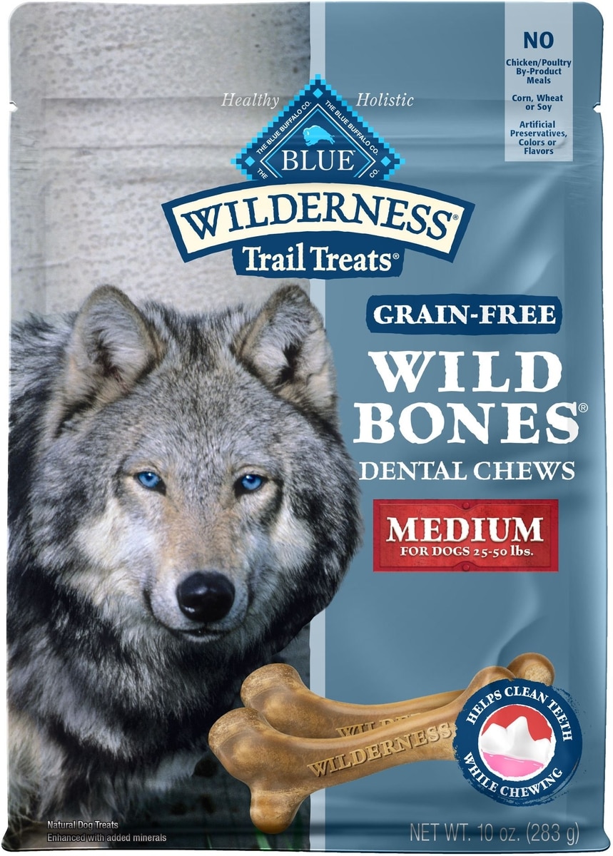 BLUE Wilderness Wild Bones are the 100% grain-free treat made to satisfy the spirit of the wolf that lives in every dog. Like all BLUE Wilderness foods, it's made from the finest natural ingredients.