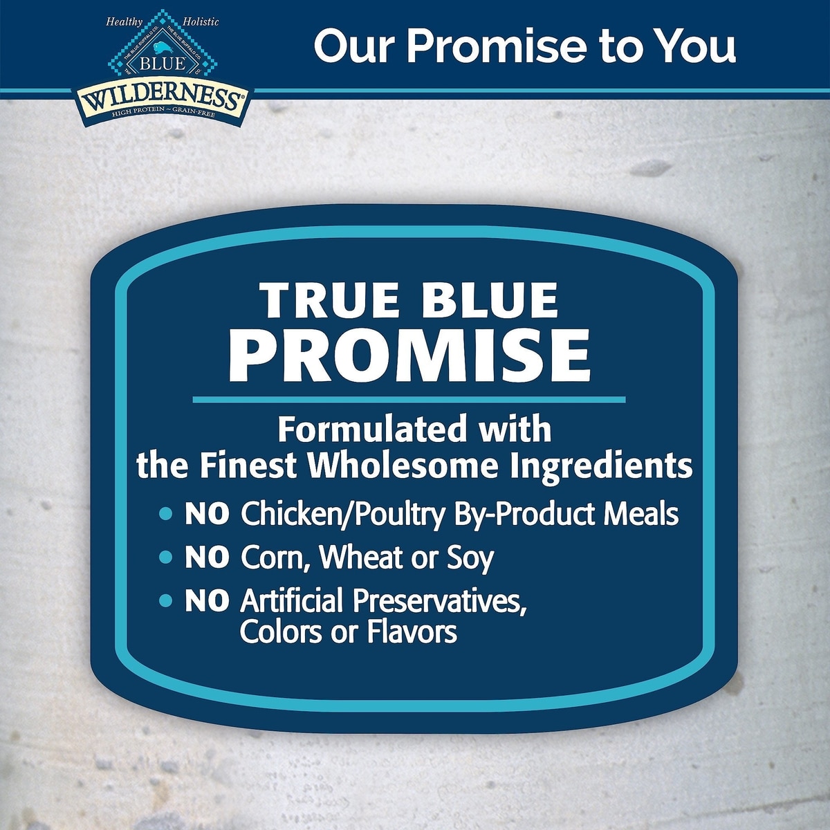 Are 100% grain-free, Contain NO chicken (or poultry) by-product meals, Contain NO corn, wheat or soy and Contain NO artificial preservatives, colors or flavors.