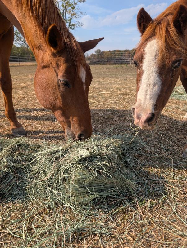 Overall I’m really happy with Blue Mountain hay. The hay is fresh and clean with great texture. There is very little dust compared to other brands I’ve tried. Great value! Horse and bunnies approve!