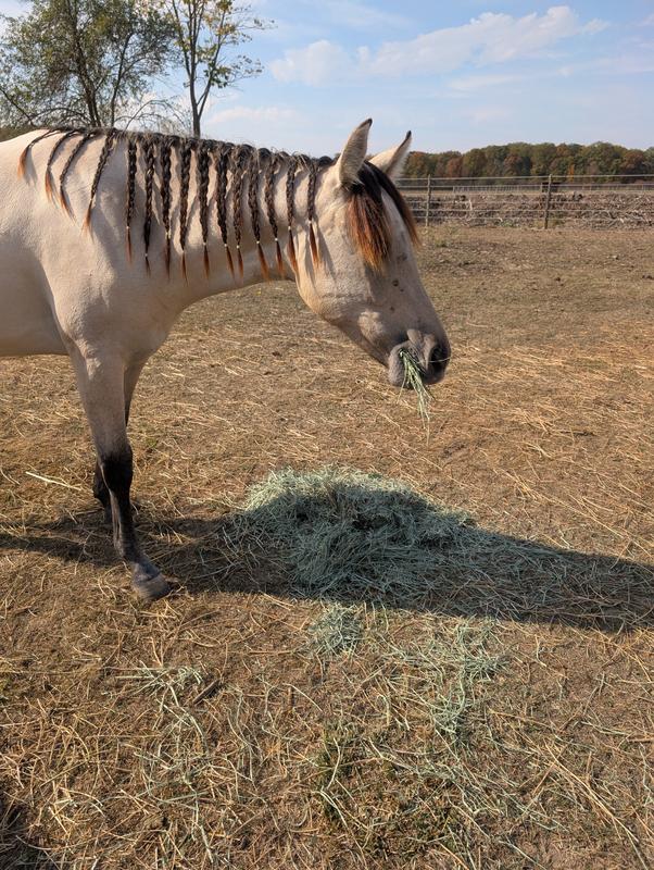 I’m from the Midwest and have had horses most of my life, so I’ve seen a lot of hay — and this hay is pretty. It’s green, soft, smells great, and mine wasn’t dusty