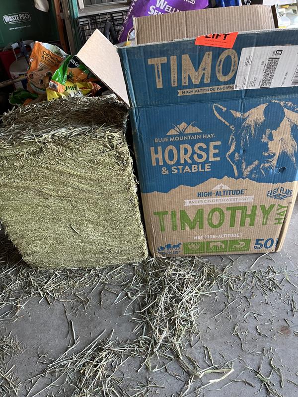 This is absolutely excellent Timothy hay. Our hay crop in the NE this year has been unfortunate. My senior mare is having a hard time with it so I've been supplementing with Blue Mountain Timothy, Teff and Orchard grass. The quality is first rate. Fresh smelling, minimal dust and best of all my mare devours it. I mix some of all three and soak it serving it warm and well soaked. I also feed their Timothy and teff pellets soaked. I recommend all Blue Mountain products highly.