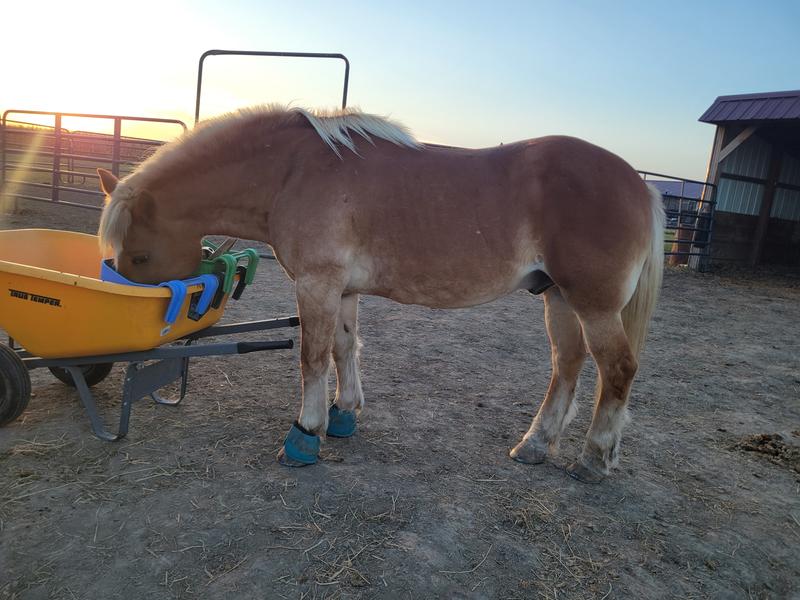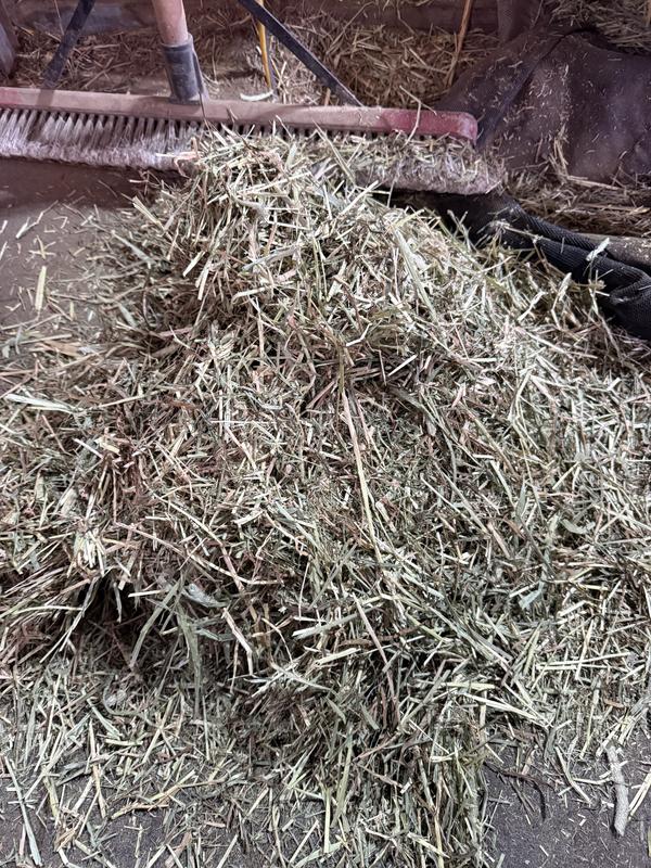 This product is easy to pull apart for feeding. Nice and dry. Straw like consistency as opposed to some hay that is more grasslike. However, my horse, Appey, didn’t like it. She wouldn’t even try it. We tried hand feeding, putting a bunch on the ground beside her regular hay and mixing in with her regular hay . She wud nose thru the mixture till she found her regular hay and not touch this Blue Mountain Hay. However, my goats, Tim and Bob loved it. They dove right in and ate it up.