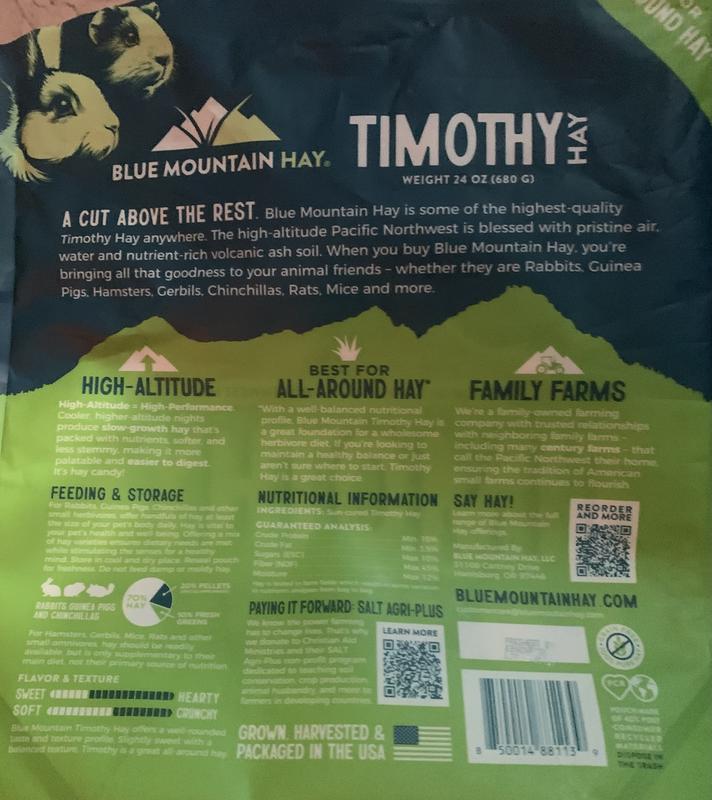 Blue Mountain Hay Small Animal Food High Altitude Timothy Hay Small Animal Food, 24-oz
