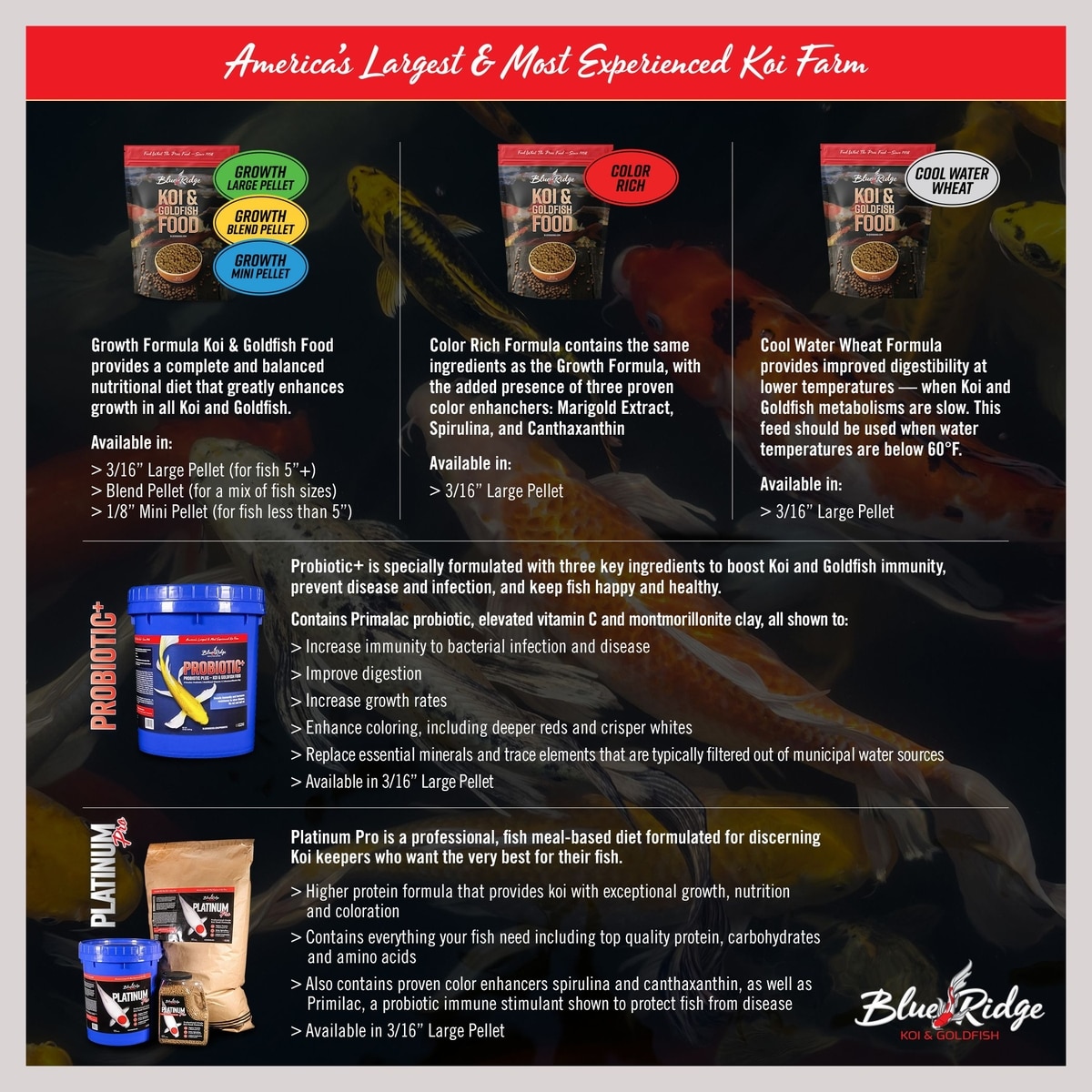- Complete and balanced diet formulated to promote growth in both large and small koi and goldfish.