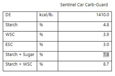 This feed has an NSC content of 7.8%. Please reference the chart below for further nutritional information.