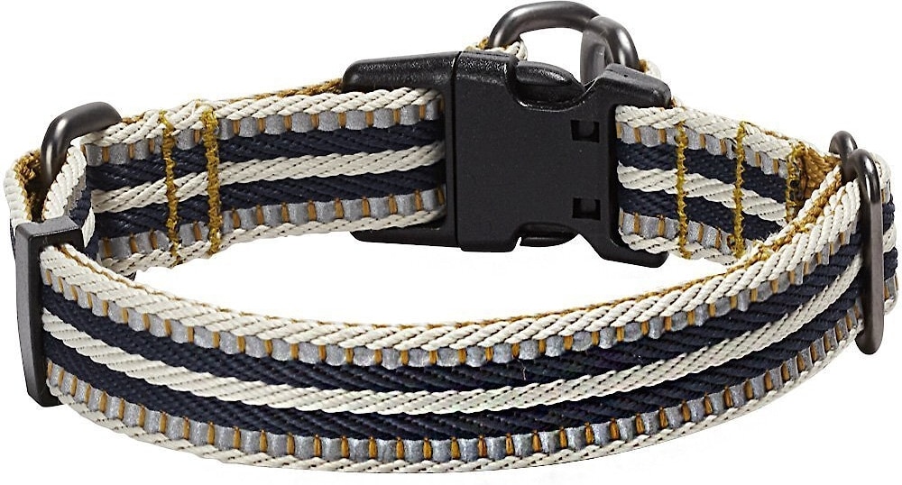 Blueberry Pet 3M Multi-Colored Stripe Polyester Reflective Dog Collar, Olive & Blue-Gray, Small: 12 to 16-in neck, 5/8-in wide