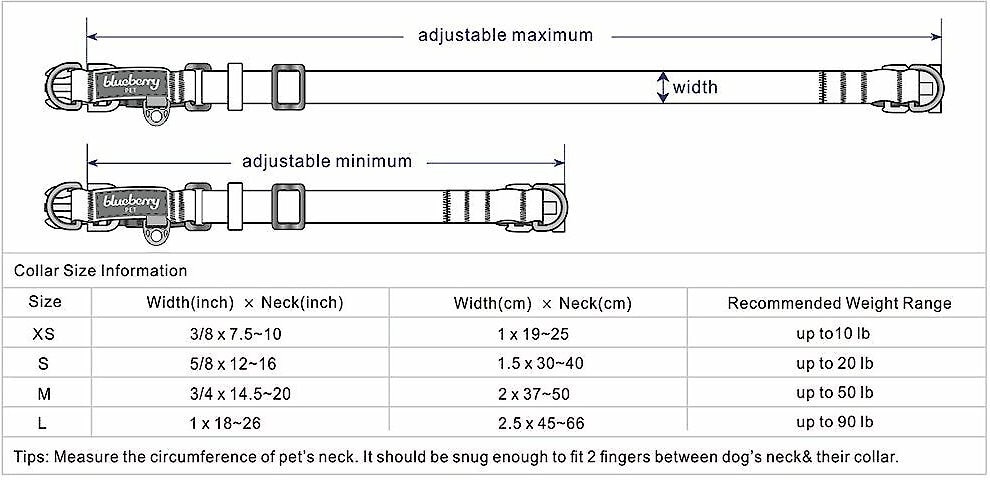 | Size | Neck Size | Collar Width | Recommended Pet Weight |