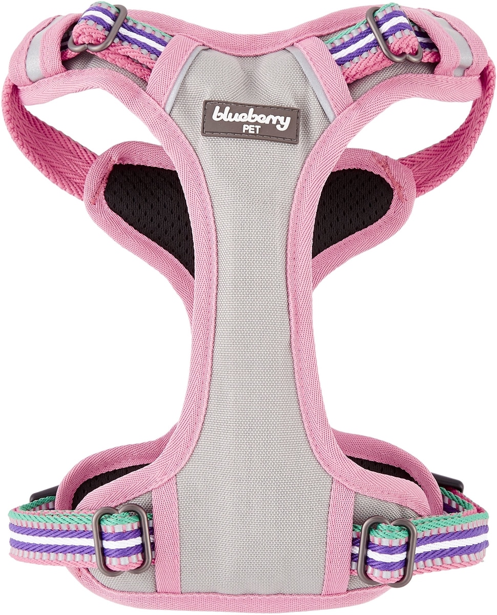 Blueberry Pet 3M Multi-Colored Stripe Mesh Reflective Back Clip Dog Harness, Emerald & Orchid, Small: 17.5 to 21-in chest