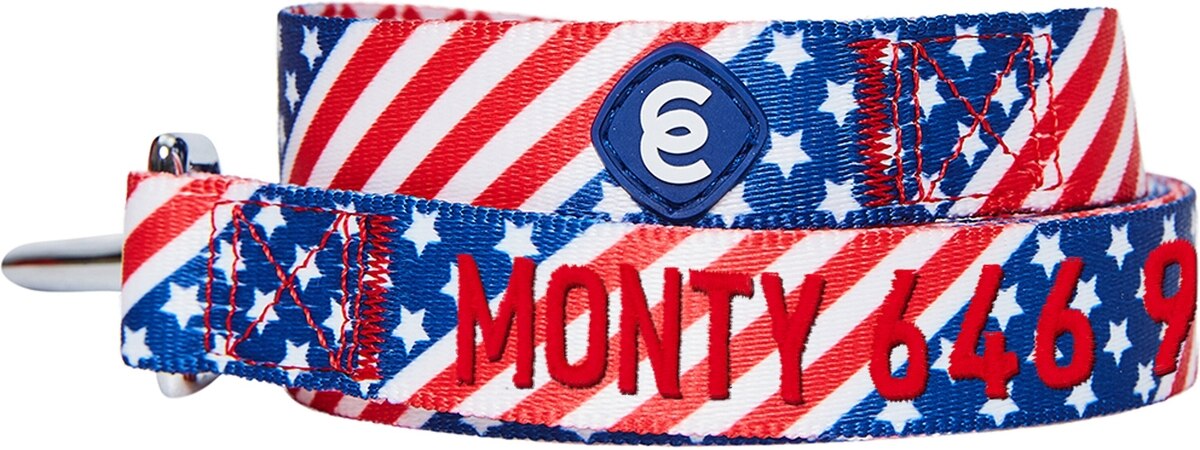 Blueberry Pet American Flag Personalized Standard Dog Leash, Small: 5-ft long, 5/8-in wide