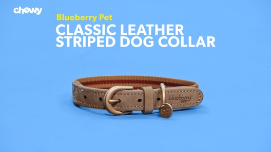 Blueberry Pet Classic Leather Striped Dog Collar, Navy, White & Red, Small