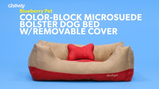 Blueberry Pet Color-Block Microsuede Bolster Dog Bed with Removable Cover, Tango Red/Beige, Small