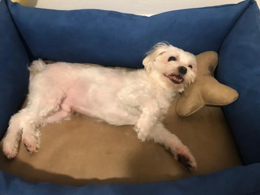 He loves his new bed with the bone pillow. He curls up @ night and puts his head on the bone pillow. Thank you Ruff.