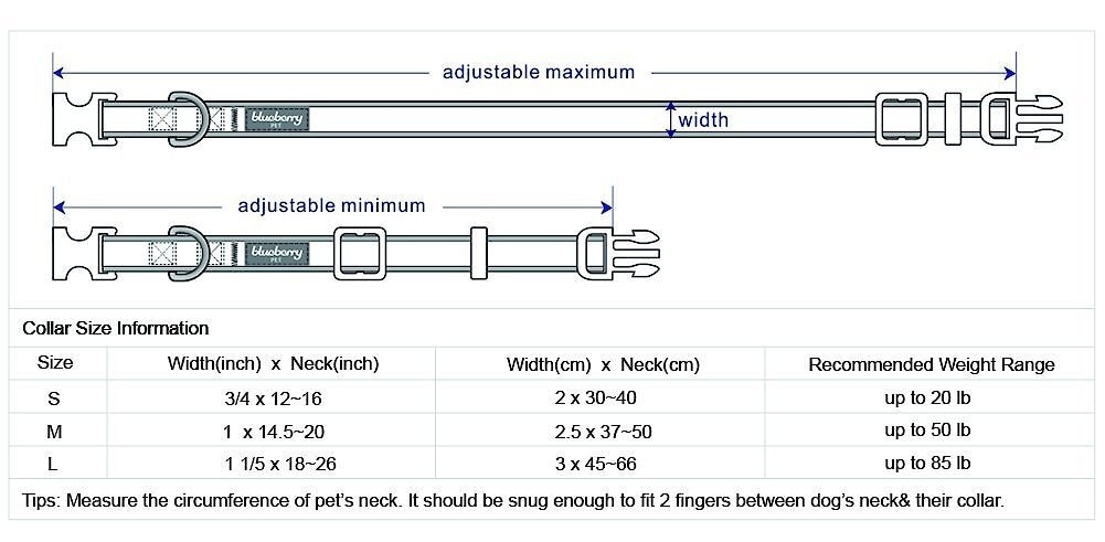 | Size | Neck Size | Collar Width | Recommended Pet Weight |