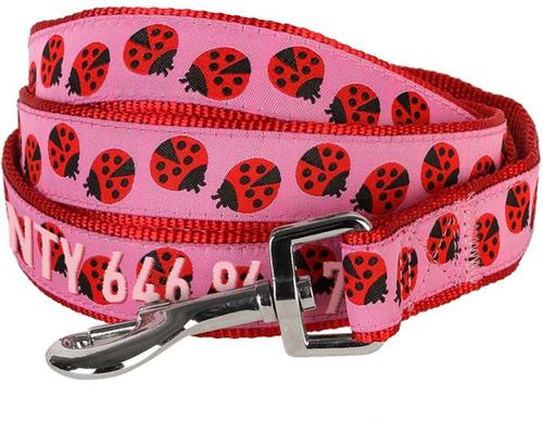 Blueberry Pet Webbing Ladybug Designer Personalized Standard Dog Leash, Small: 5-ft long, 5/8-in wide