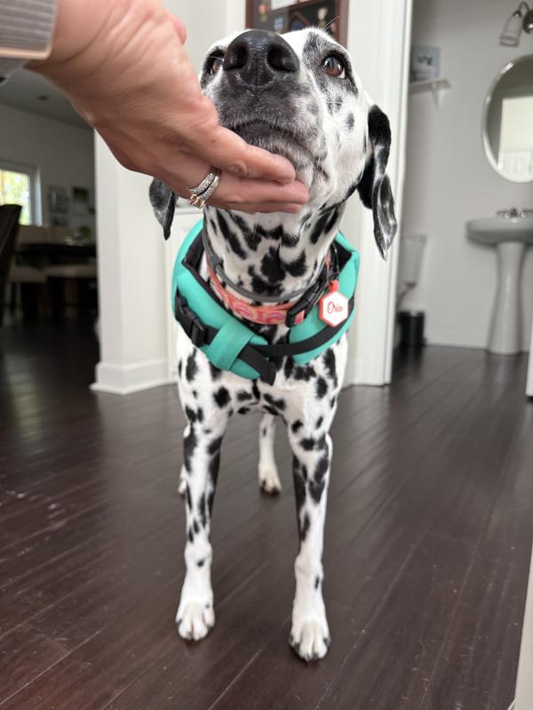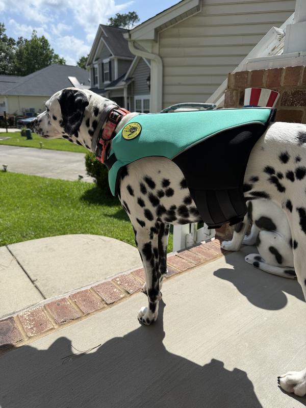 I do really like this life vest. It’s not overly puffy and sits nicely against my 43 lbs Dalmatian (size medium). The girth has just enough Velcro but the quick release straps are more than long enough. The only spot that might get a little annoying is the front strap across the chest. There is ample quick release strap to attach, however, the padding doesn’t have Velcro and doesn’t attach to each other so the one side of the padding can slip under the quick release strap. This would not impair its use at all, would just be a cosmetic annoyance and may not have that issue if the dog is getting in and out of the water often! Overall, this will be a life vest I pull out before some of my other current ones for sure!