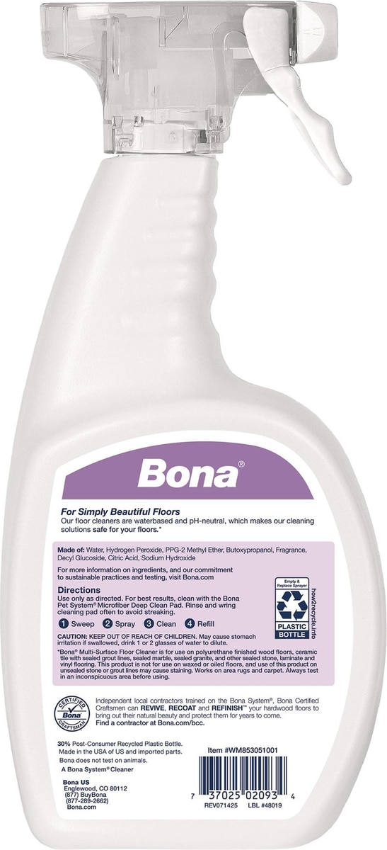- Bona Pet System Multi Surface Cat Floor Cleaner, 32-fl oz bottle$10.97 Chewy Price$11.99 List Price$10.42 Autoship PricePromo, New Customers Only: Spend $49+, Get $20 eGift Card +2 deals